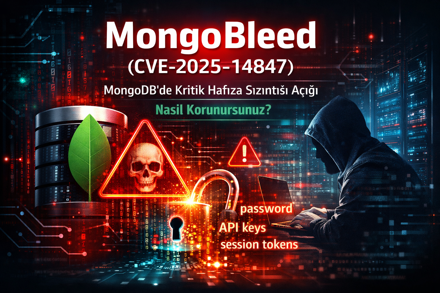 MongoBleed olarak adlandırılan CVE-2025-14847, MongoDB Server’daki kritik bir unauthenticated memory leak (kimlik doğrulama gerektirmeyen bellek sızıntısı) güvenlik açığıdır. Bu açıklık, uzaktan yetkisiz bir saldırganın MongoDB sunucusuna özel hazırlanmış ağ